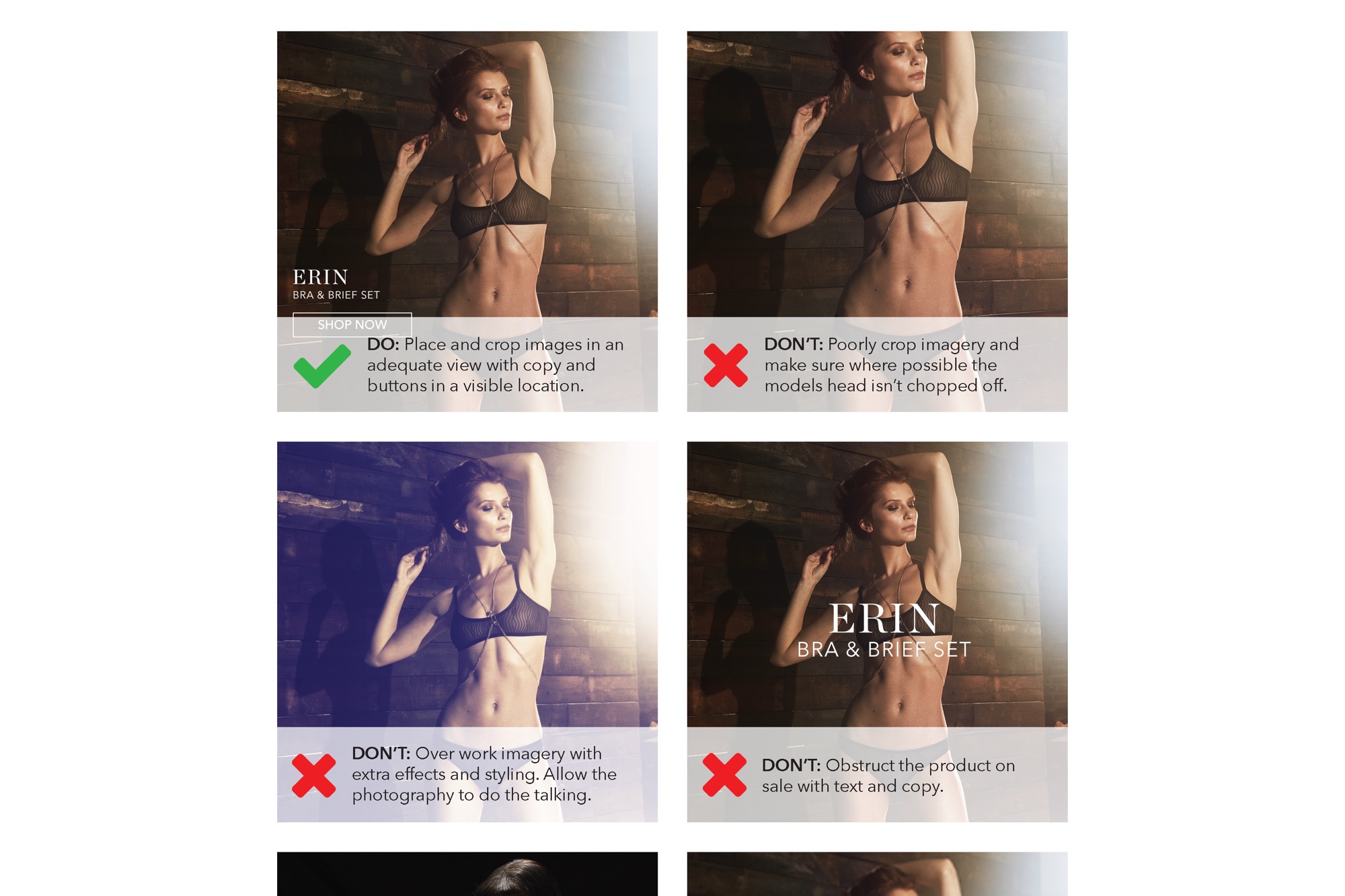 During my tenure with the brand I was instrumental in helping them to deliver their website re-design and digital transformation. A big part of this re-design was focused around their Brand Design Guidelines and design system for online. This was a rigorous process and took 6 months to complete from start to finish. We had to map out all the different site content and elements whilst also improving on the tone of voice, brand styling and rules. The project really helped to align all the content that was being created and gave the brand a standout identity within the lingerie and nightwear space. Even though I left the company in 2015 I understand they are currently still using and working with these design guidelines.