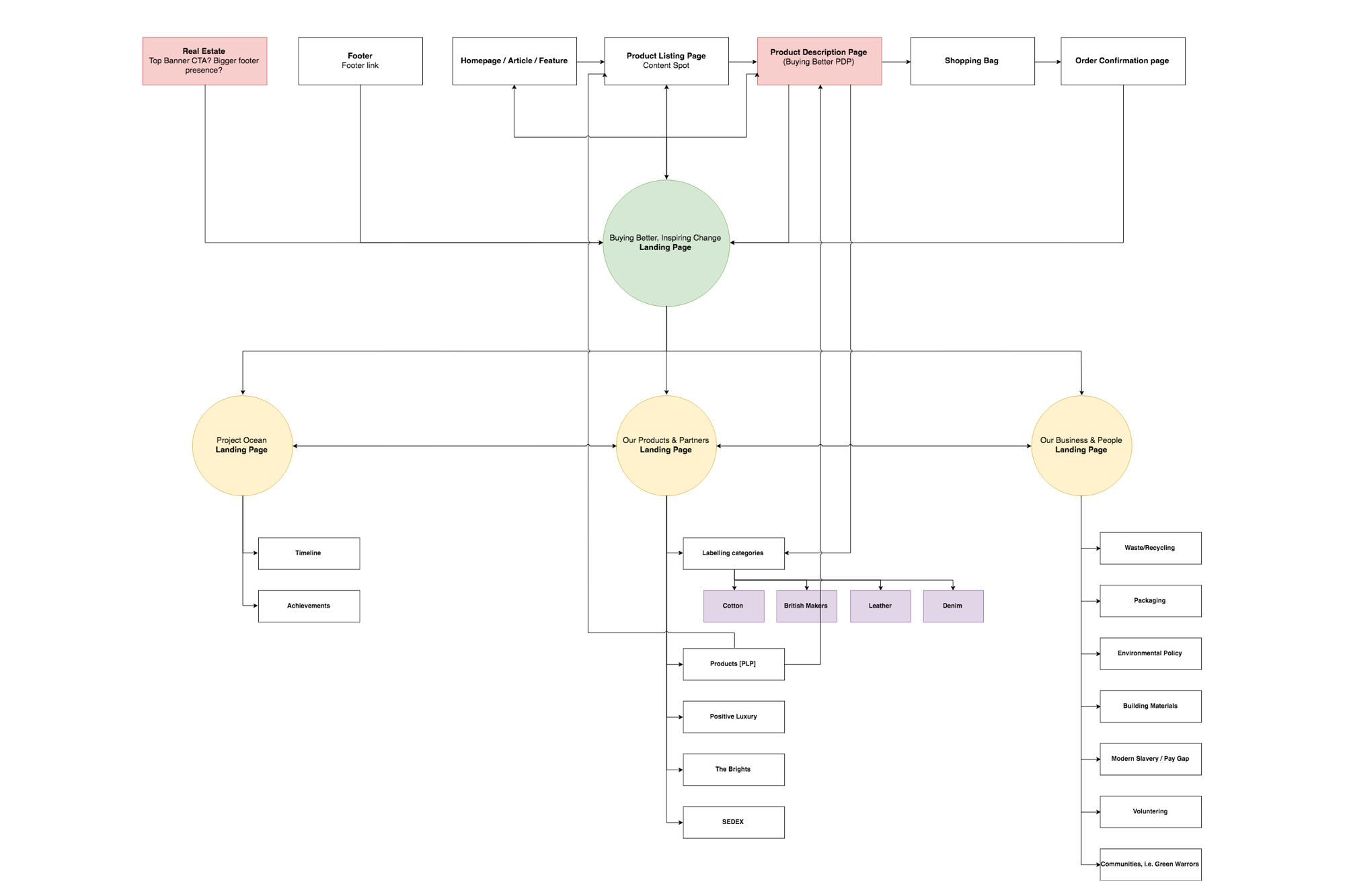 My role in the sustainability project was to understand, explore and define how we talk to our customers about buying better online, including mapping out the entire user journey and leading the online delivery. The categories